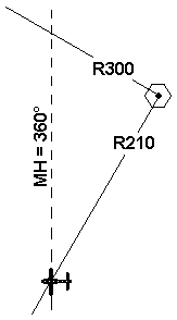 und fliegt auf diesem Radial – also mit